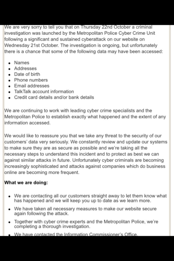 Talk Talk have apologised for their lack of security. In an exclusive interview, they told us: