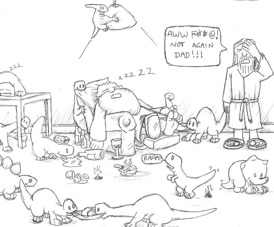 Tags: dinosaurs, drunk, God, Jesus Permalink