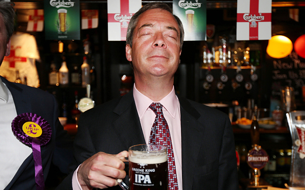 UKIP leader Nigel Farage has been found stabbed to death in a pub, a pint in one hand and his penis in the other.